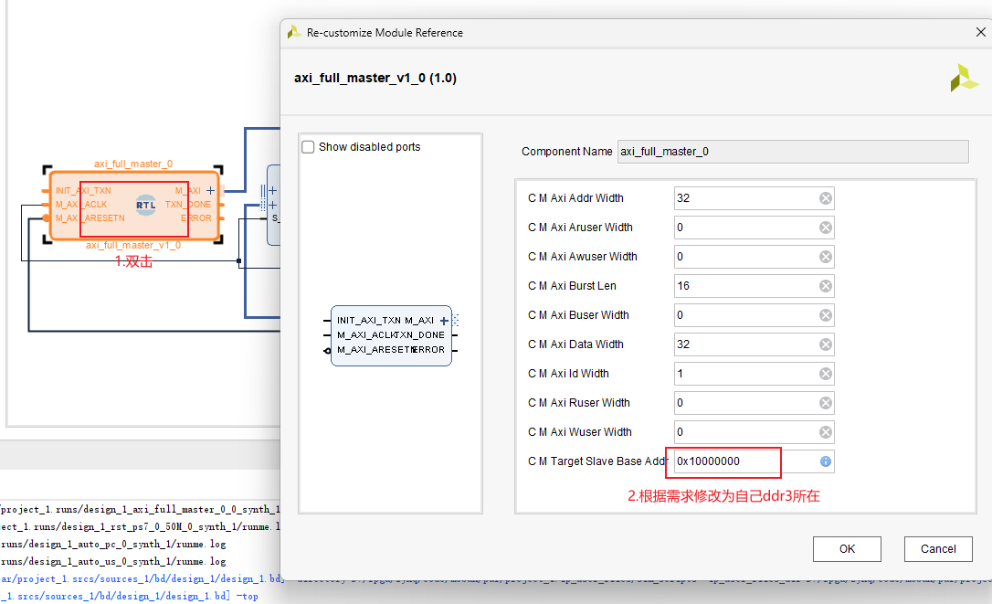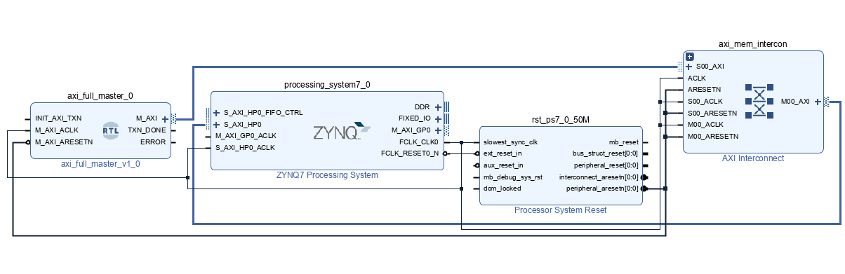 配置zynq,打开AXI HP,它是zynq上连接ddr3的模块,其连线逻辑为AXI FULL从机