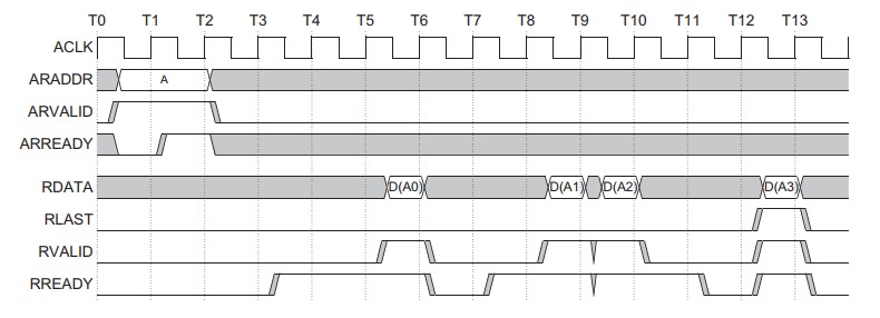 // 4. 读地址通道:主设备发VALID后,从设备立即应答READY