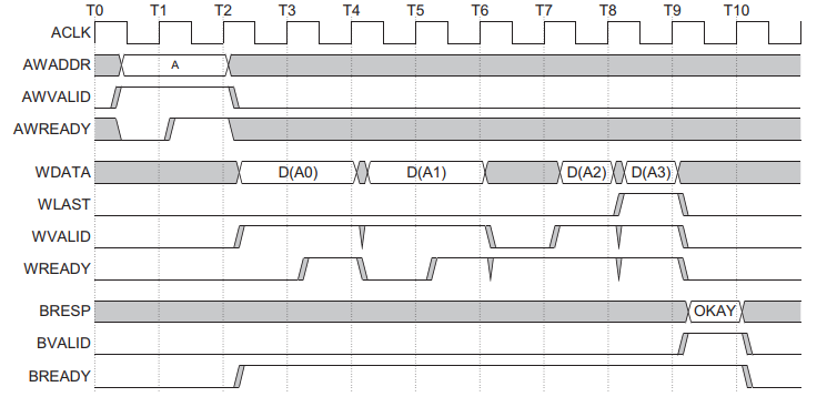 //第一次突发写,写入32位数据1、第二次突发写写入32位数据2...一直持续到第16次突发写,完整的突发写入结束