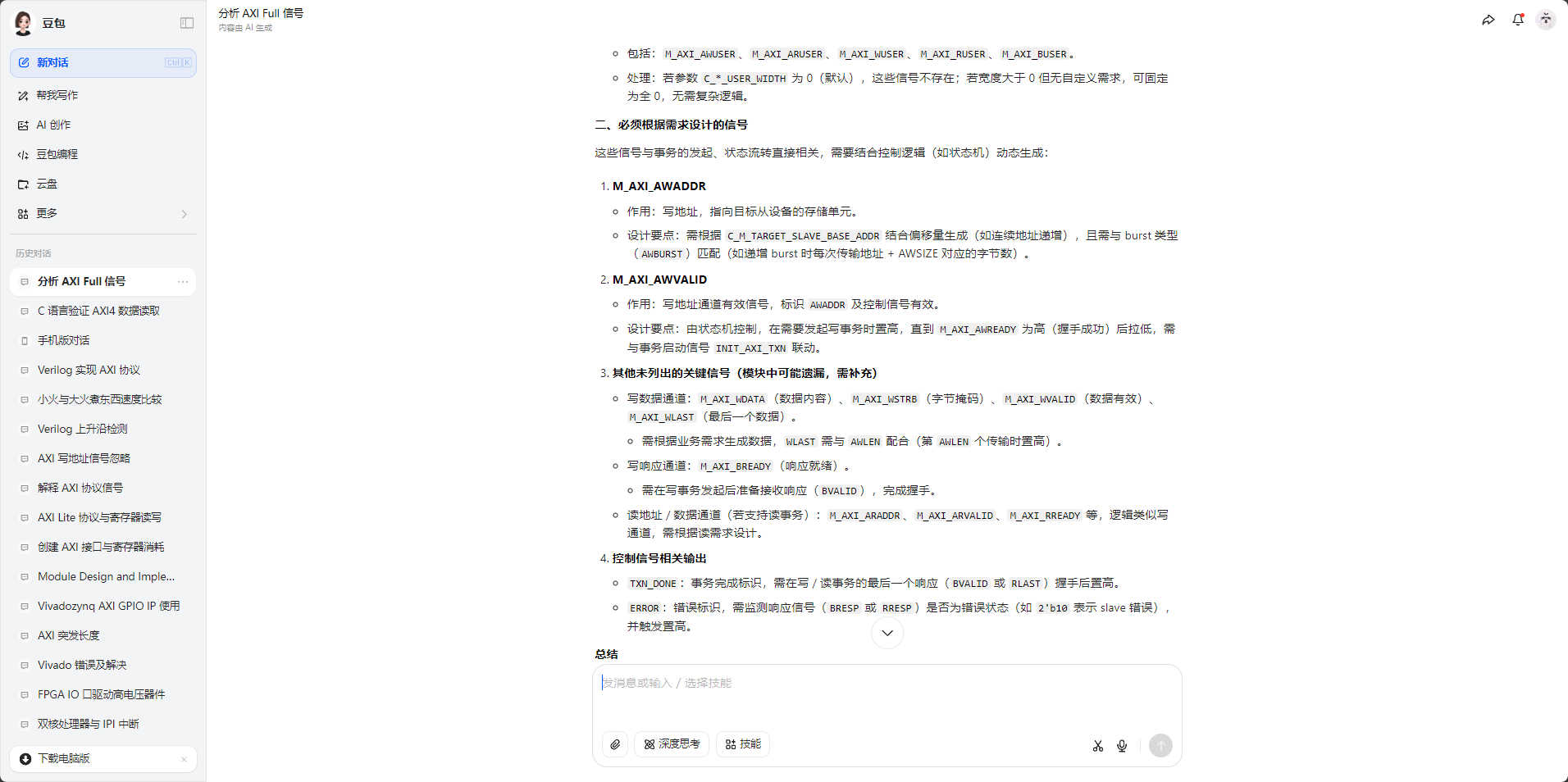 output wire [C_M_AXI_WUSER_WIDTH-1 : 0] M_AXI_WUSER,//无需关心