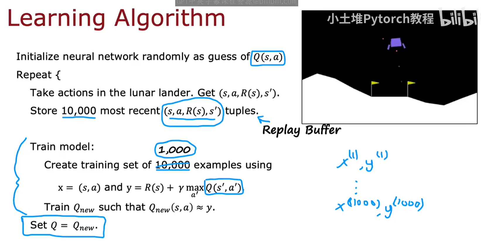 i. 从Replay Buffer中随机采样 一个小批量(mini-batch 的经验元组(例如1000个)。