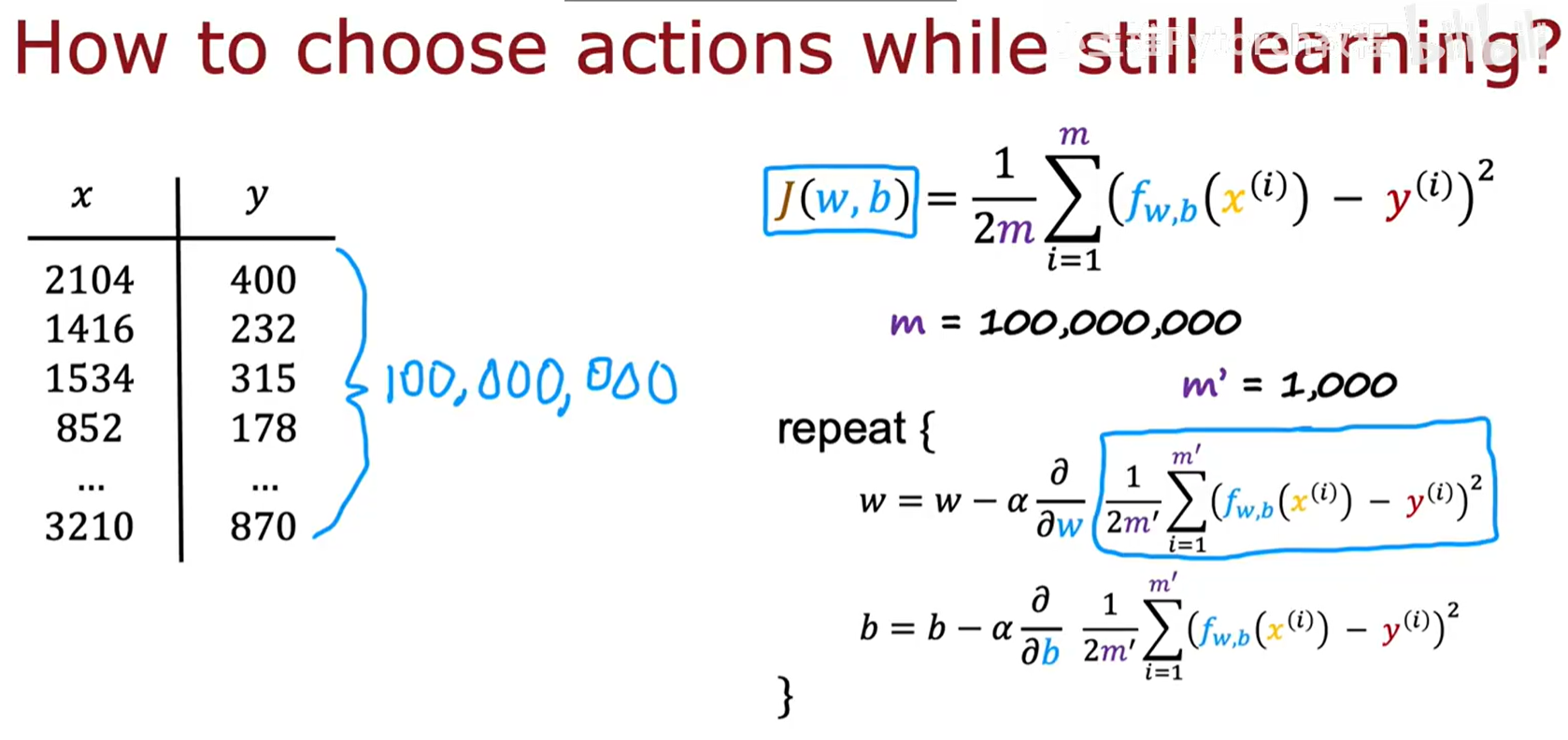 在训练神经网络时,如果我们的Replay Buffer非常大(例如存储了100万个经验元组),在每次更新参数时都计算整个缓冲区的梯度(批梯度下降, Batch Gradient Descent)是完全不可行的。