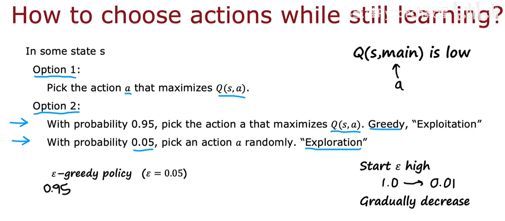 ε的概率(例如5%),选择探索(Exploration),即在所有可能的行动中完全随机地选择一个。