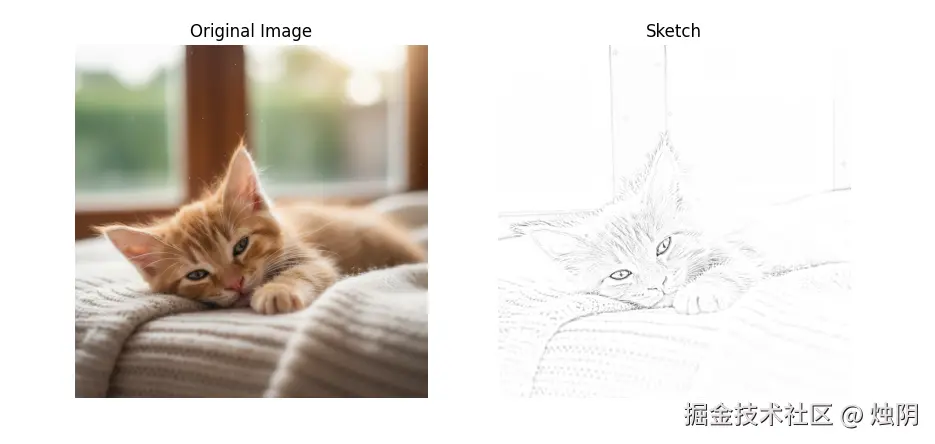 # 使用 Matplotlib 显示原始图像和素描图像
