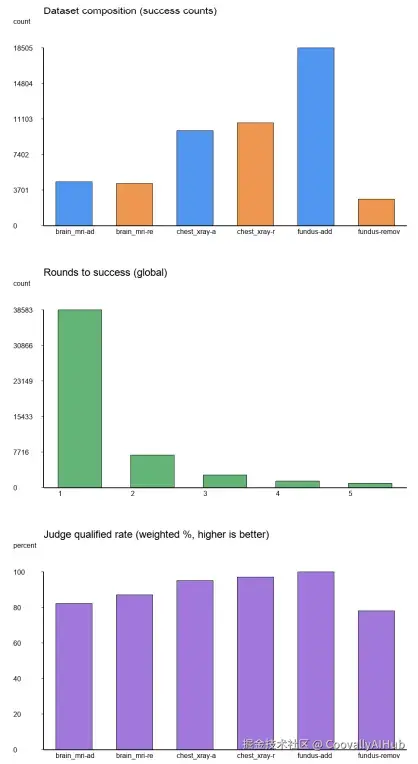 - 质量验证: 初步人工验证显示,LLM评判官与放射科医生的判断一致性达到81%,证明了该质量评估体系的有效性。