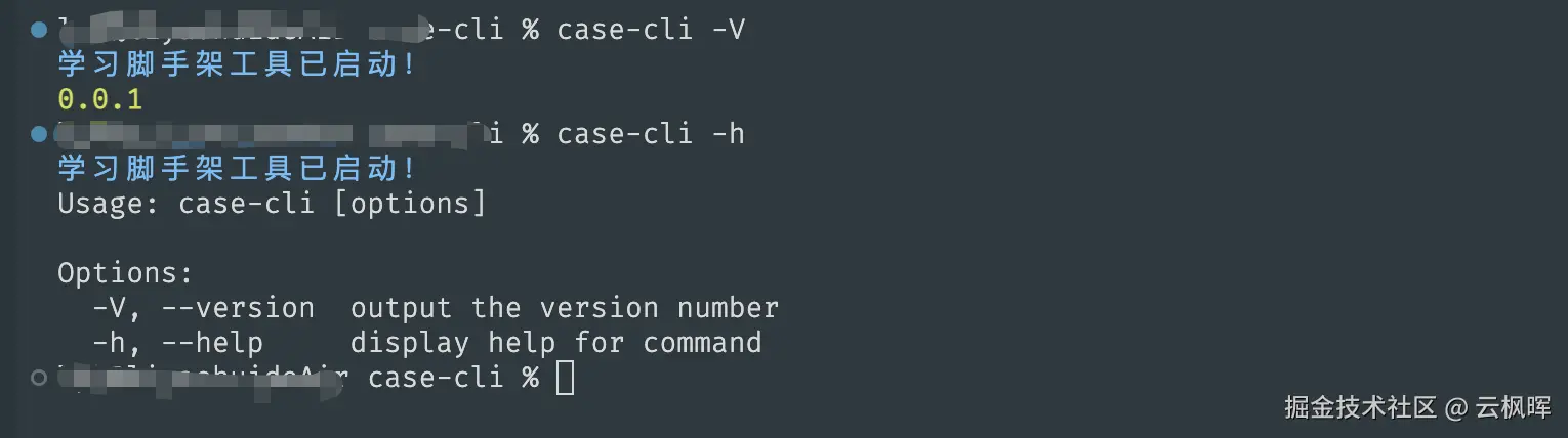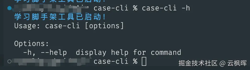 输入case-cli -V将显示脚手架版本号,而且case-cli -h也有变化