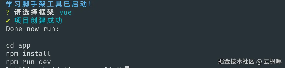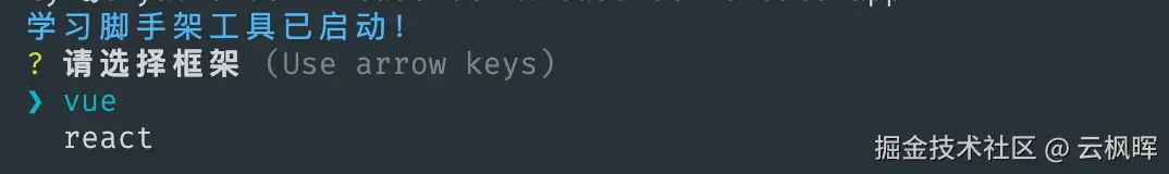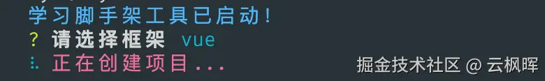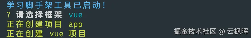 - 交互式询问用户 通过命令行交互,如确定项目名称、选择框架