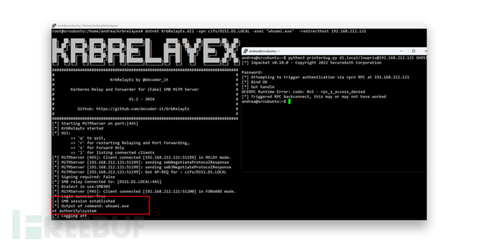 - 使用 Kerberos 中继工具(如 Pierini 开源的 KrbRelayEx)拦截认证