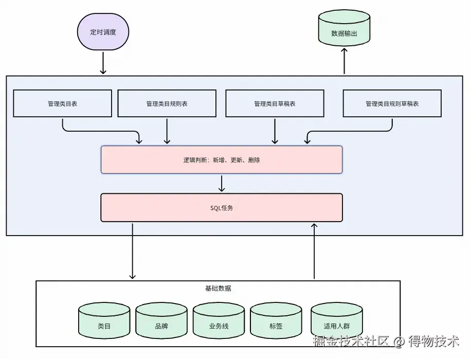 考虑到管理类目规则平均变更频率不高,且变更时间点较为集中(非紧急场景占比 90%),故选择定时任务方案实现: