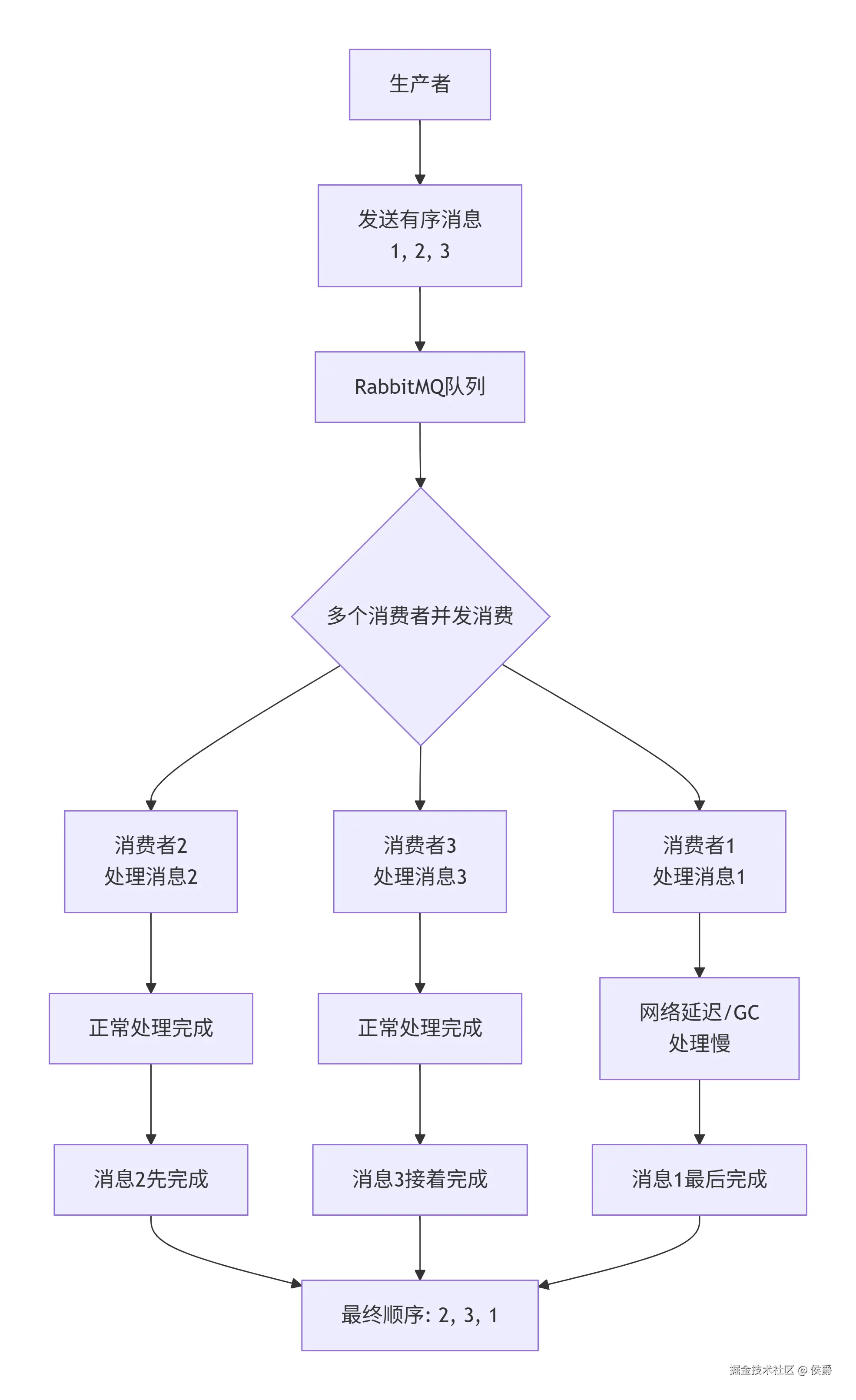 - 多消费者竞争同一队列:队列中的消息会被多个消费者并行拉取,导致先发送的消息可能后被处理。
