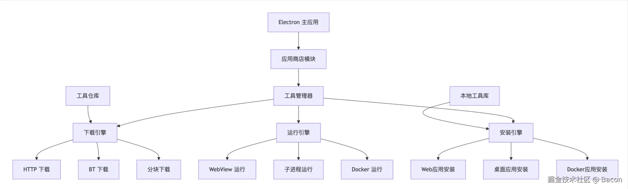 在 Electron 应用中实现应用商店功能,支持一键下载、安装和运行各种工具(Web应用、桌面应用),实现真正的"开箱即用"体验。