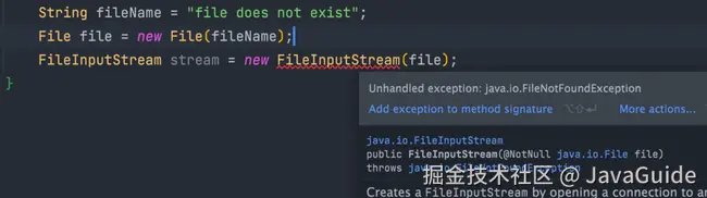 Checked Exception 即 受检查异常 ,Java 代码在编译过程中,如果受检查异常没有被 catch或者throws 关键字处理的话,就没办法通过编译。