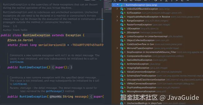 RuntimeException 及其子类都统称为非受检查异常,常见的有(建议记下来,日常开发中会经常用到):