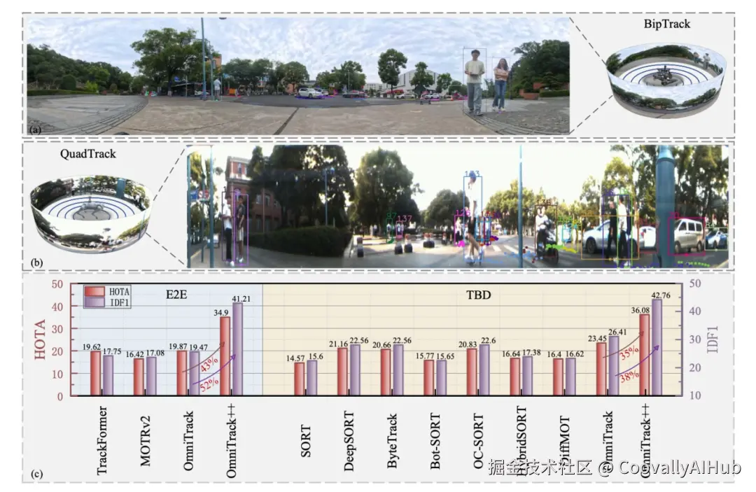 面对这些痛点,湖南大学、浙江大学、南洋理工大学、卡尔斯鲁厄理工学院和索非亚大学INSAIT的联合团队提出了OmniTrack++ ------一种革命性的全景多目标跟踪框架,不仅在技术上实现了创新突破,更在公开数据集上取得了显著性能提升,在新建的EmboTrack数据集上HOTA指标提升了惊人的43.07% !