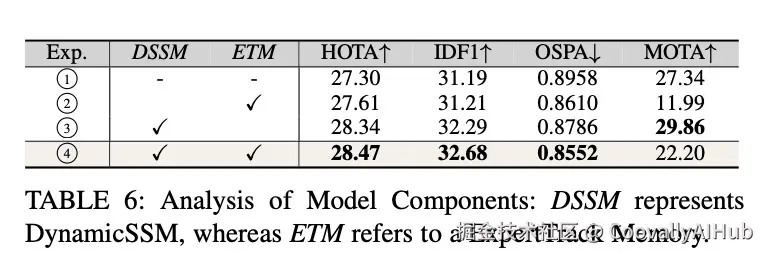 消融实验进一步证明了各个模块的关键作用。移除DynamicSSM或ExpertTrack Memory都会导致性能显著下降,确认了这些设计的价值。