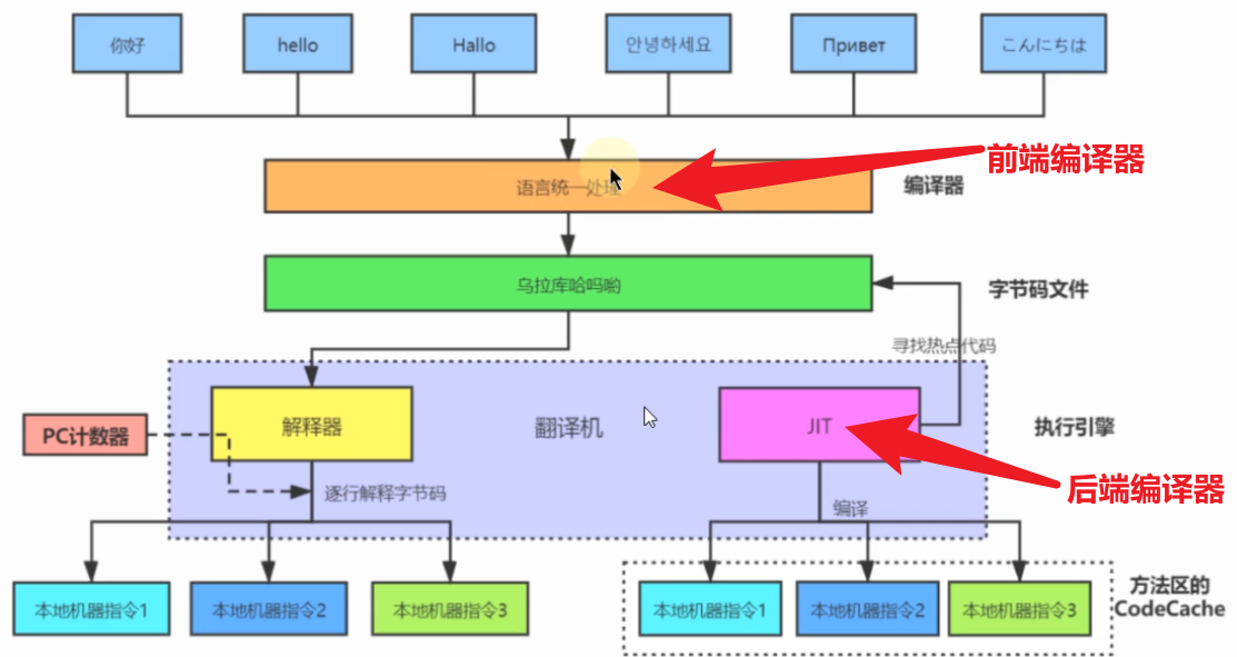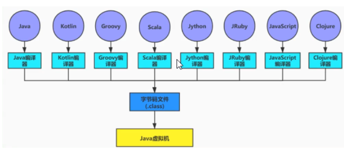 - 无论何种语言,只要编译结是正确的字节码文件,那么这种语言就可以在Java虚拟机上执行