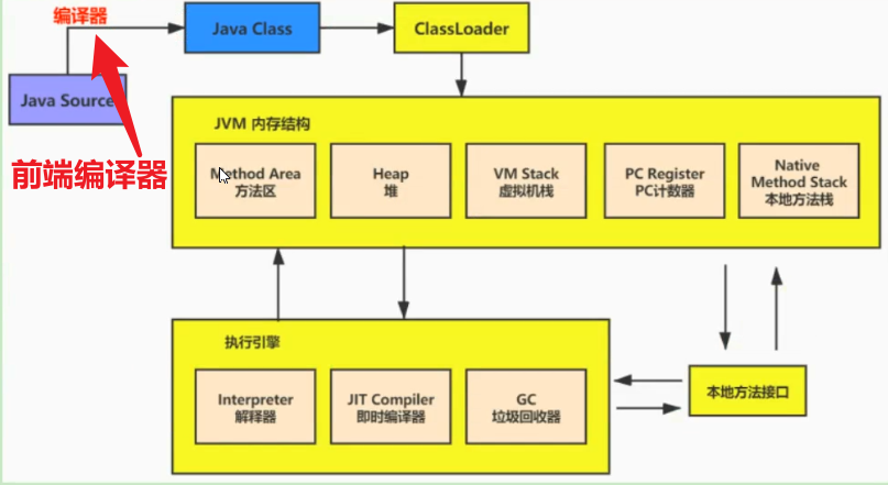 负责将符合Java语法规范的Java代码转换为符合JVM规范的字节码文件,前端编译器不属于JVM