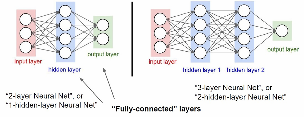 这里左边是单一隐藏层,右边是两层隐藏层。