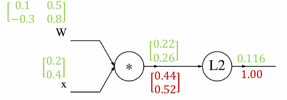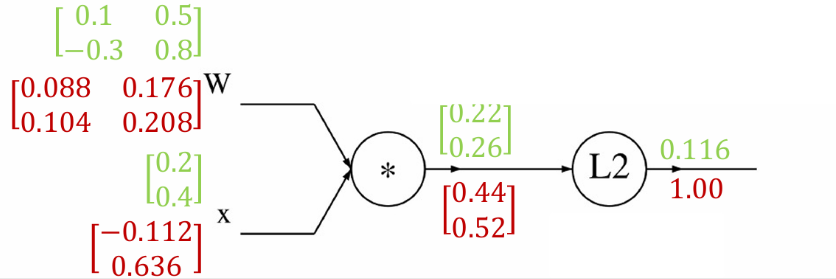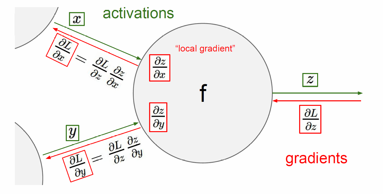 也就是局部梯度(local gradient)乘以上游梯度(its gradient,从后面传回来的梯度)