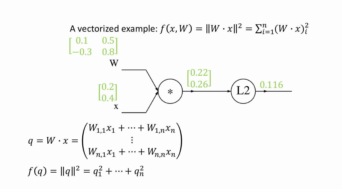 使用链式法则: ∂ f ∂ W i , j = ∑ k ∂ f ∂ q k ∂ q k ∂ W i , j \frac{\partial f}{\partial W_{i,j}} = \sum_k \frac{\partial f}{\partial q_k} \frac{\partial q_k}{\partial W_{i,j}} ∂Wi,j∂f=∑k∂qk∂f∂Wi,j∂qk