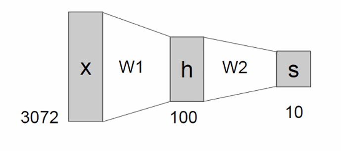或者三层神经网络: f = W 3 m a x ( 0 , W 2 m a x ( 0 , W 1 x ) ) f=W_3max(0,W_2max(0,W_1x)) f=W3max(0,W2max(0,W1x))。