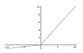 在x<0时有一个小的斜率(0.1),x>=0时斜率为1。