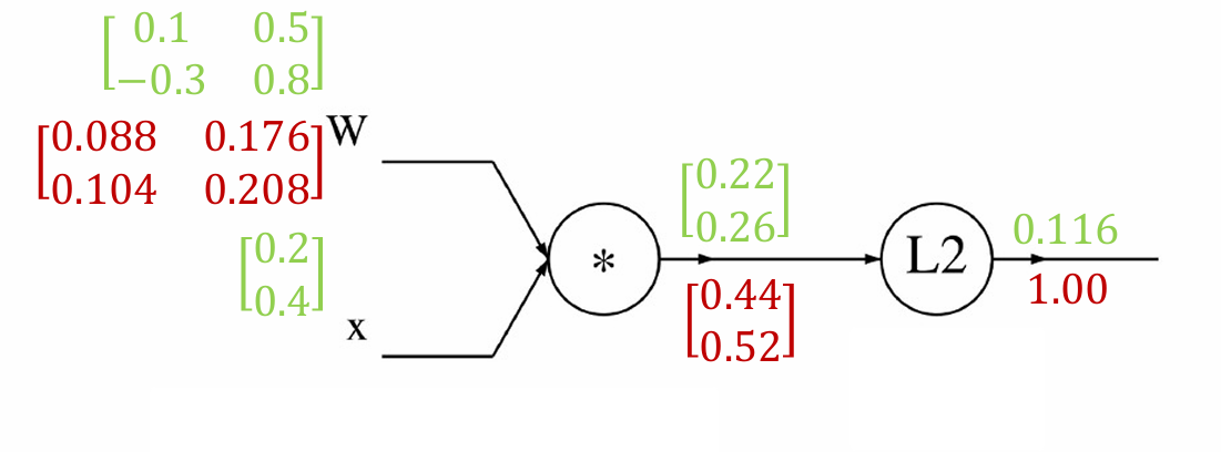 例子: ∂ L ∂ x = y × 2.00 = − 4.00 × 2.00 = − 8.00 \frac{∂L}{∂x}=y×2.00=−4.00×2.00=−8.00 ∂x∂L=y×2.00=−4.00×2.00=−8.00