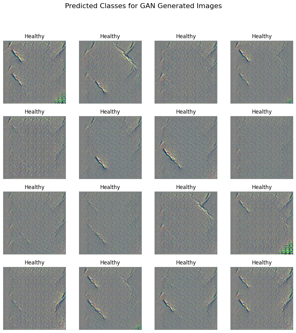 plt.suptitle("Predicted Classes for GAN Generated Images", fontsize=16)