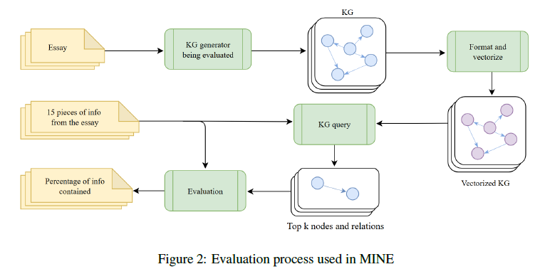 MINE 衡量抽取器将文本内容转化并提炼为知识图谱的能力。