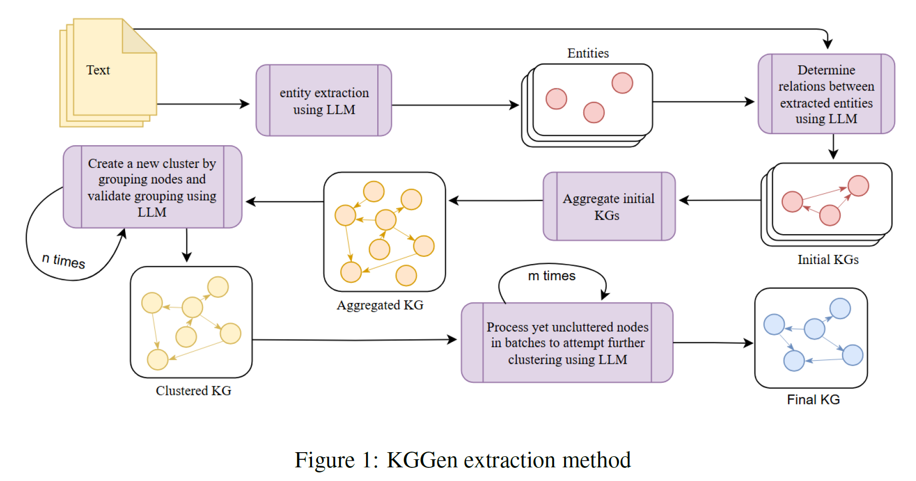 本文提出了一种解决数据稀缺问题的新方法------一个文本到知识图谱(text-to-KG)生成器 KGGen 。该方法利用语言模型从纯文本中生成高质量的知识图谱。与其他知识图谱抽取器不同,KGGen 会对相关实体进行聚类,以减少生成图谱中的稀疏性。