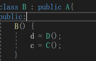 B() : d(), c() { //列表初始化,d和c执行默认构造