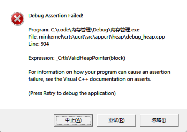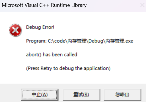 我们运行一下,发现不会编译错误也不会程序崩溃,那有没有内存泄漏呢?这里就直接说了,是没有内存泄漏的,因为这是内置类型,只需要开空间就行,而开空间调用的是operator new,这里如果要释放则需要调_free_dbg,而直接用free也会调用_free_dbg,所以没有内存泄漏。但是我们也不要这样写。那如果我们这里不是int,而是A类型的话,这里就会少调用一次析构函数,那再如果A的析构函数释放了一些资源的话,那就会出现内存泄漏了。