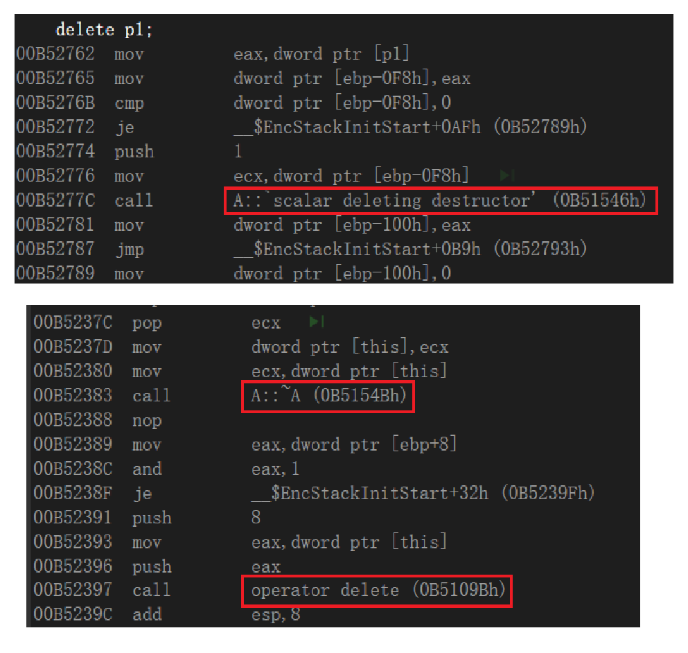 所以这里多开了4个字节的空间来存对象的个数,所以我们delete[]的时候会偏移4个字节再释放,而我们这里如果用delete的话就相当于从半截开始释放了,这样是不允许的。