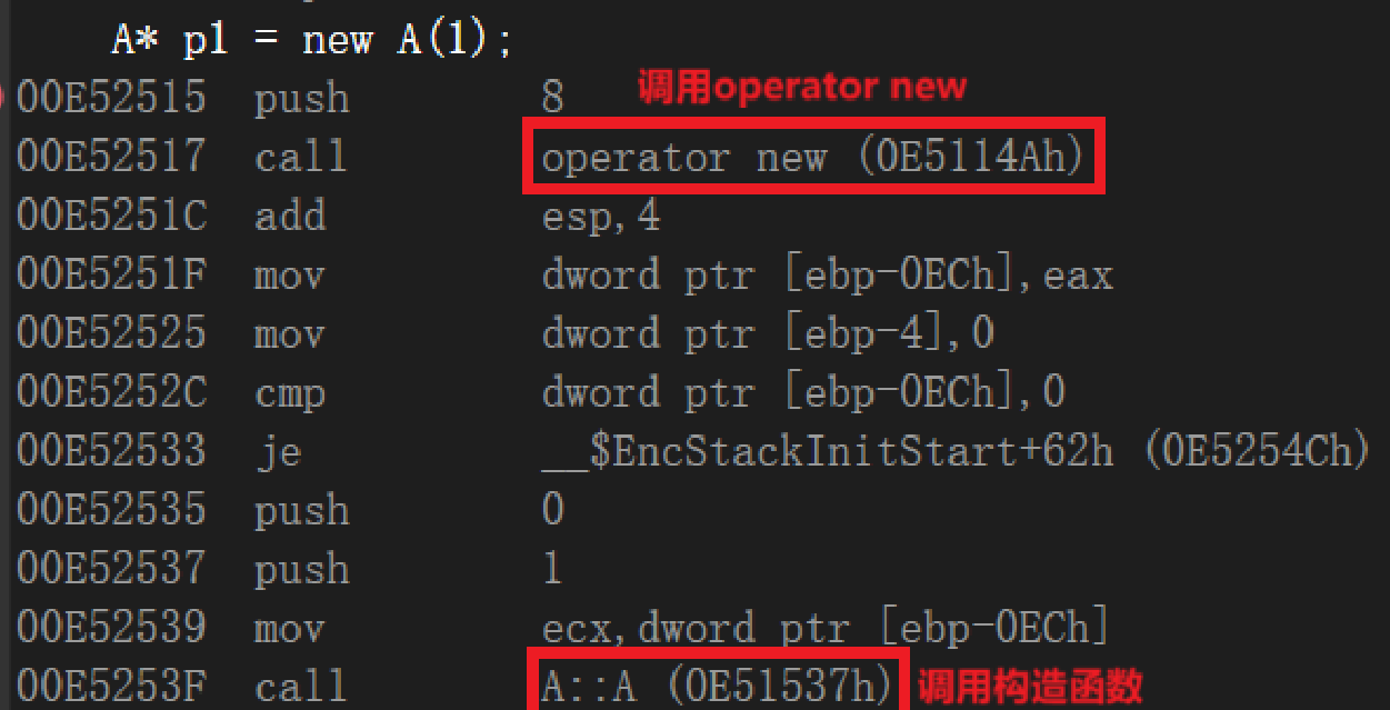 2)在申请的空间上执行构造函数,完成对象的构造。