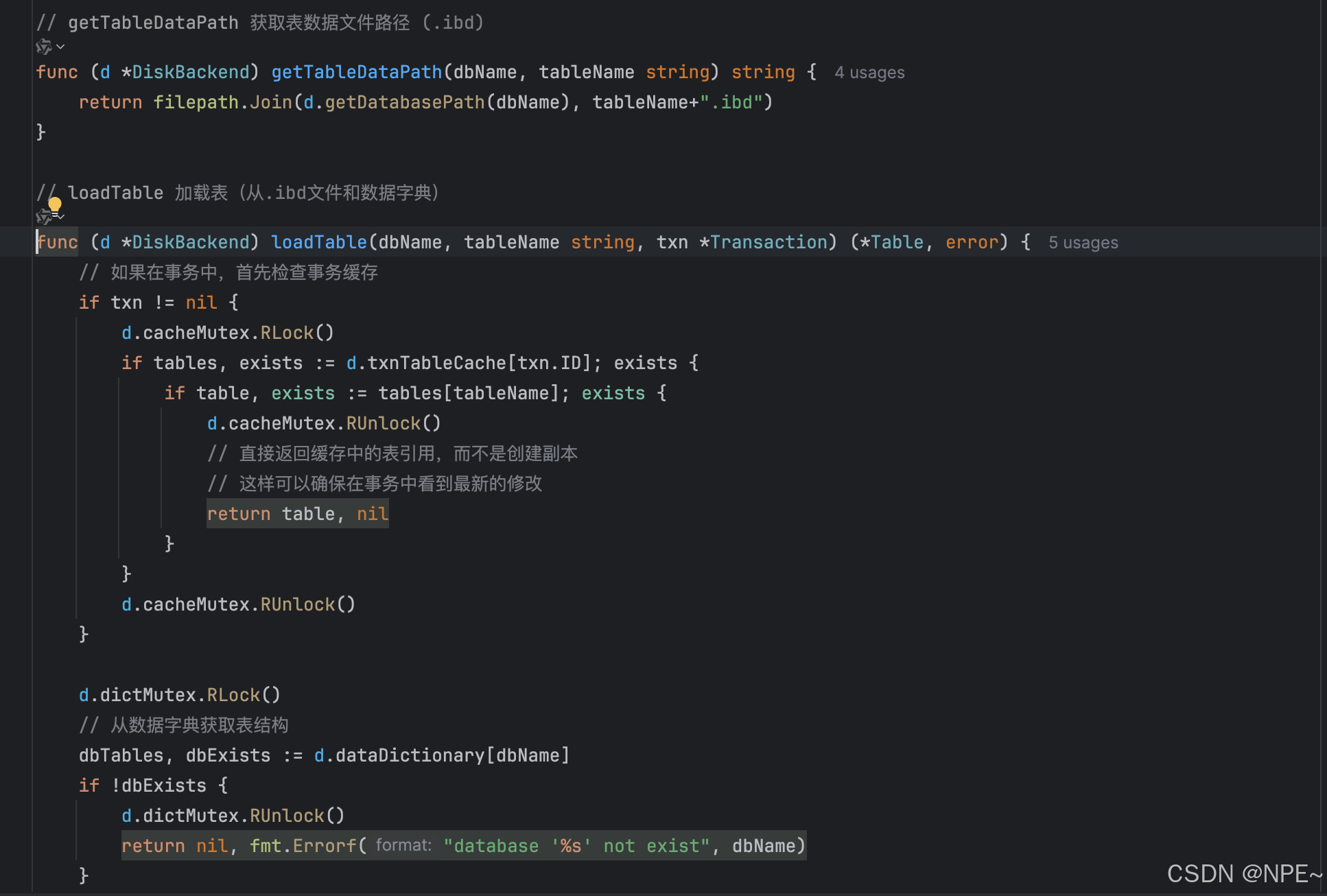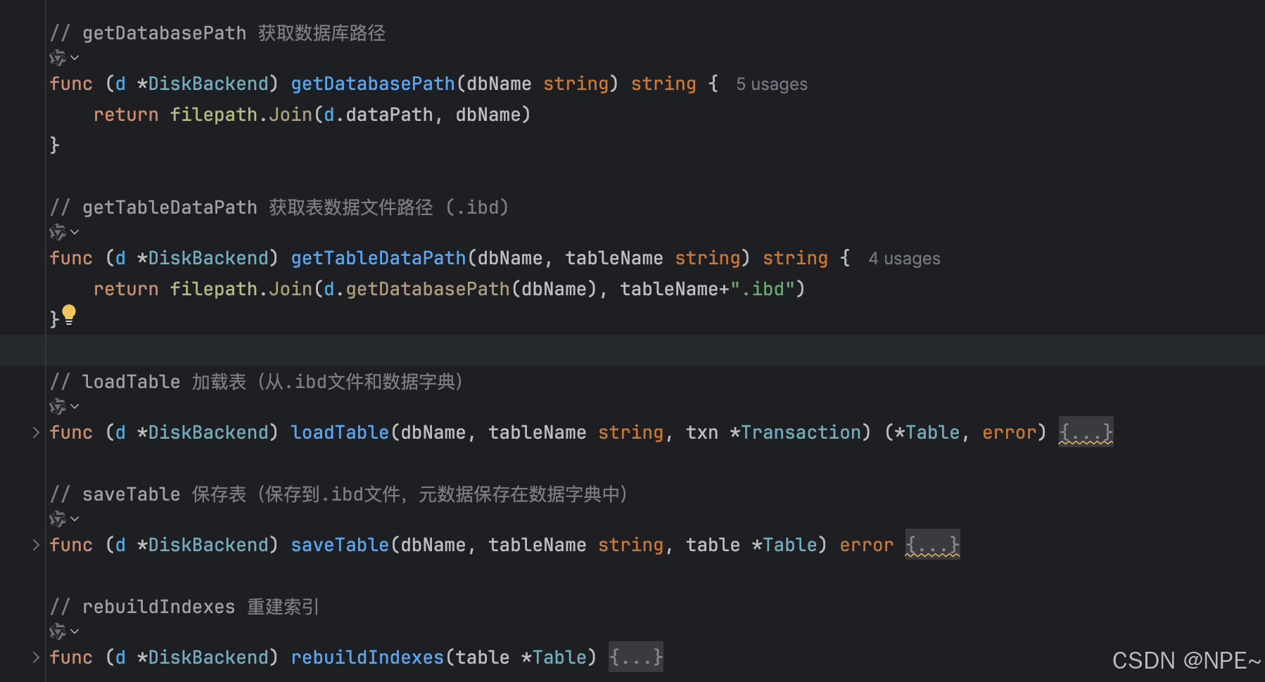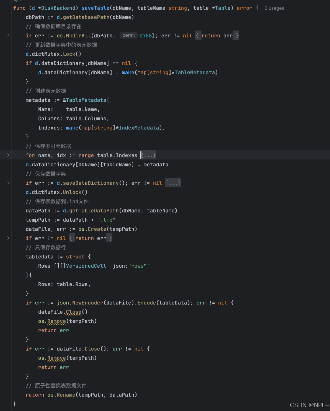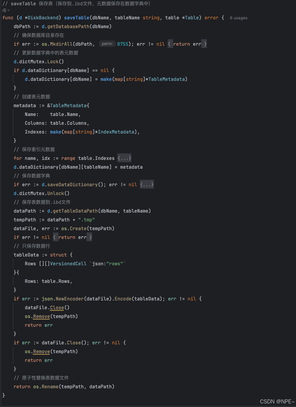 然后在disk.go中实现对数据字典的维护,比如加载和保存等,底层逻辑就是本地磁盘创建文件、读取、更新文件。