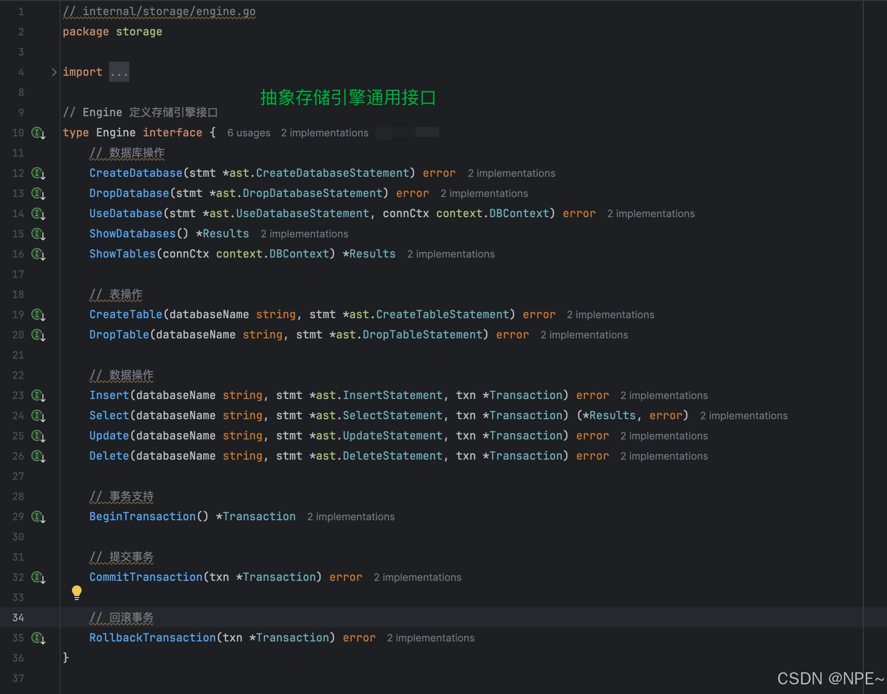 - 新增internal/storage/engine.go文件,抽取Engine接口,定义存储引擎必要接口