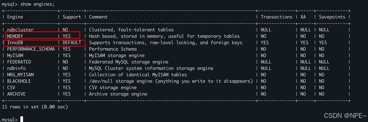 -- 通过下面SQL可查看MySQL支持的存储引擎