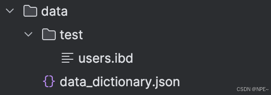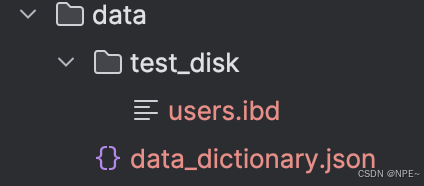 参考MySQL最新的InnoDB引擎设计,采用数据字典存储表元数据相关信息,每个表的数据单独存储为.ibd文件。这里的数据字典为了简单方便,我直接采取.json方式统一存储表的名称、表的列名等元数据信息,实际MySQL将其分散在多张表中存储。