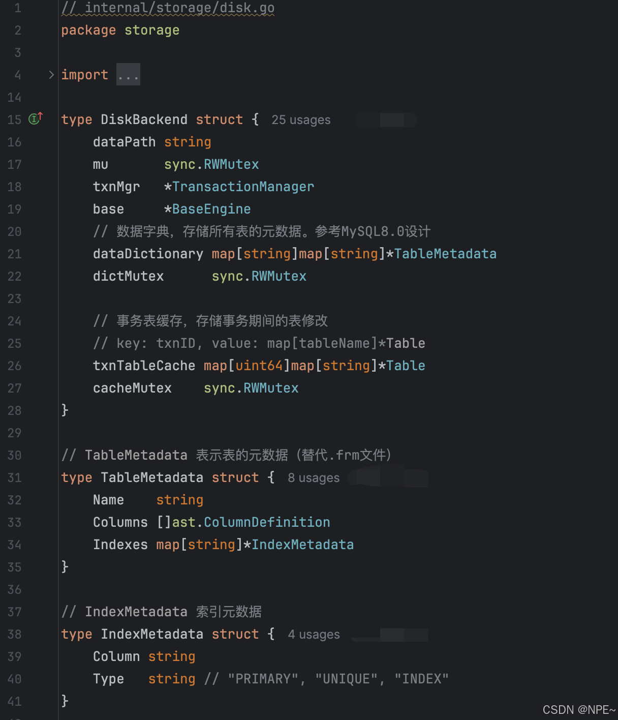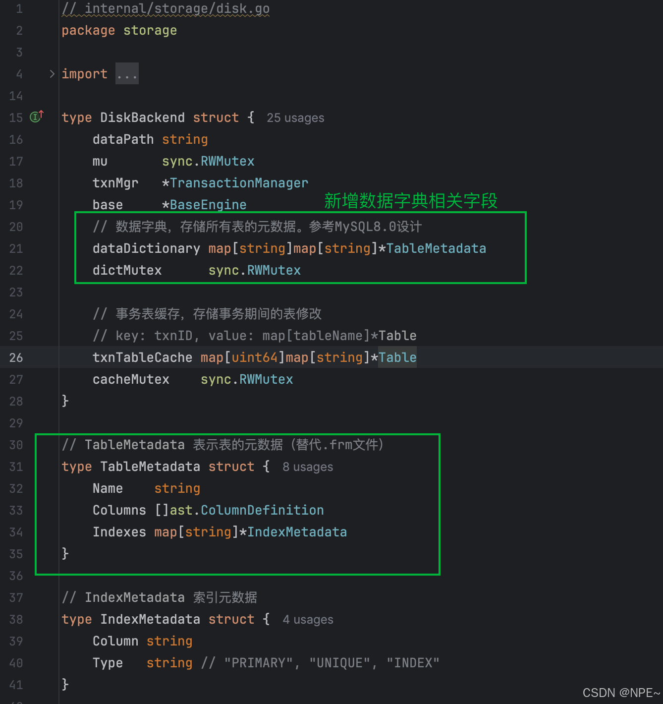 首先internal/storage/disk.go文件新增数据字典相关结构: