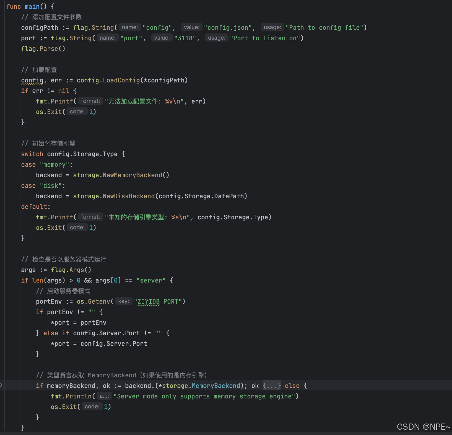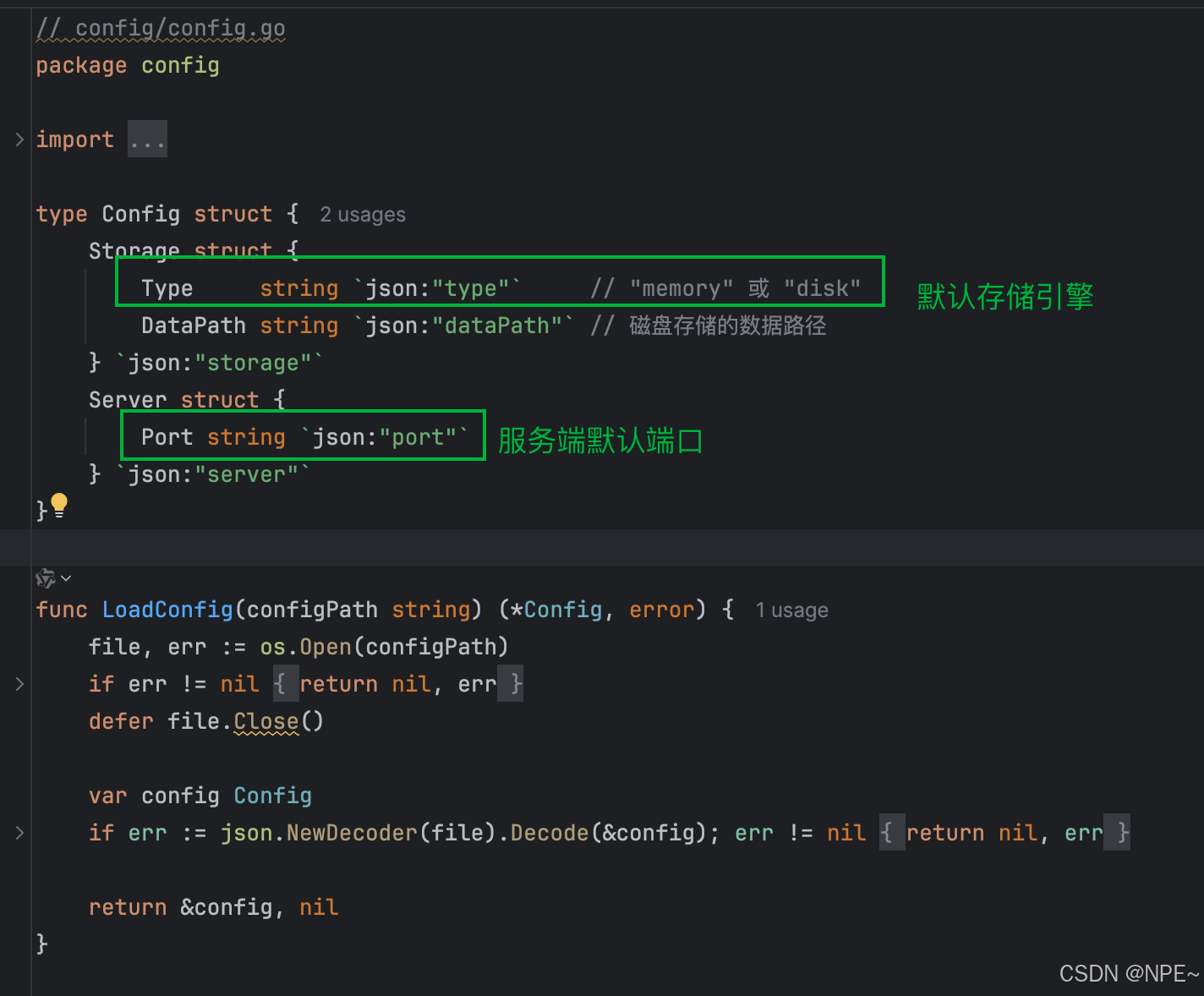 - 实现配置文件,配置程序默认server端端口、默认选择的存储引擎等