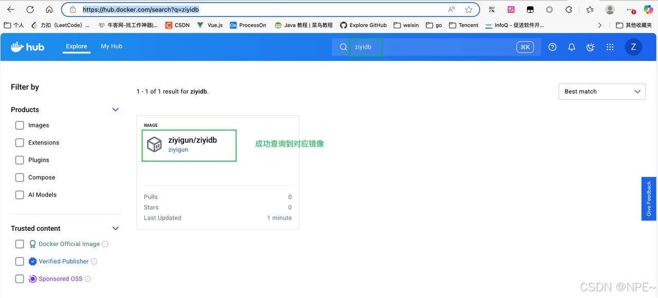 在仓库搜索ziyidb,查看是否能搜索到镜像:https://hub.docker.com/search?q=ziyidb