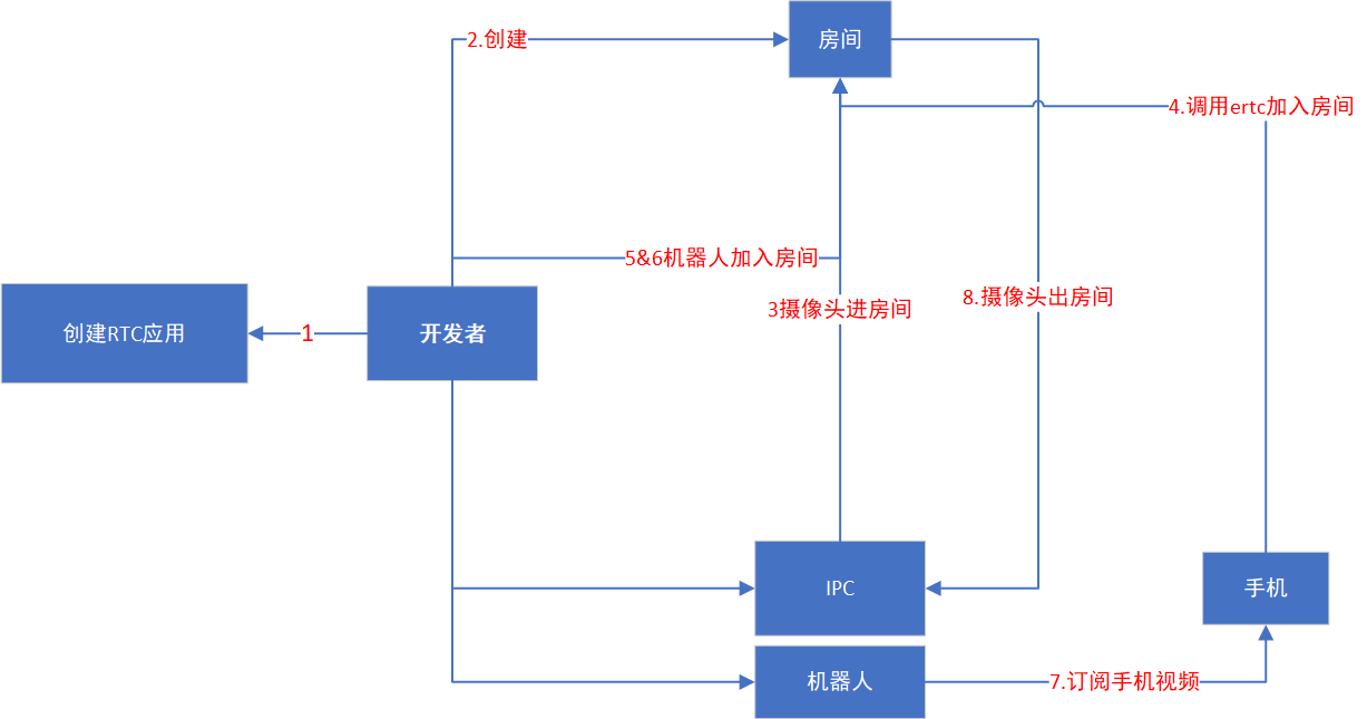 机器人调用ERTC SDK加入房间接口,加入房间参数用5生成入房间信息,ERTC SDK接入文档:https://open.ys7.com/help/1830