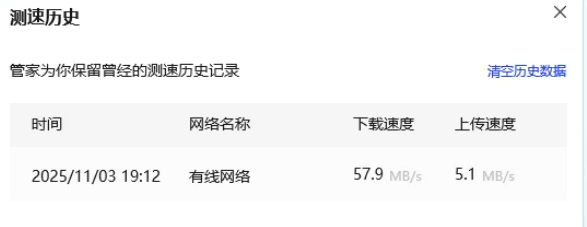 可以看到这里上行速度只有下行速度的10%左右,这里 5.1MB/s 相当于 40Mbps