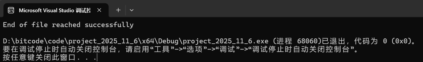 puts("End of file reached successfully");