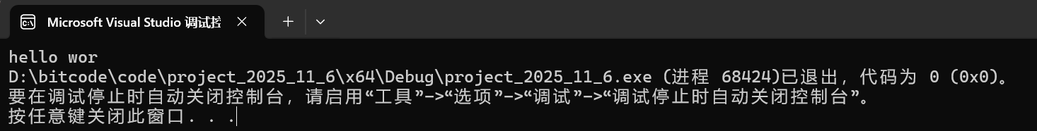 可以看到,确实如我们所说,实际显示的只有9个字符。那么我们下面来测试一下fprintf函数,我们键入如下的代码: