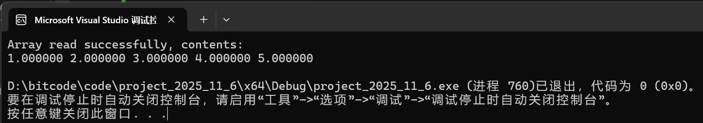 puts("Array read successfully, contents: ");