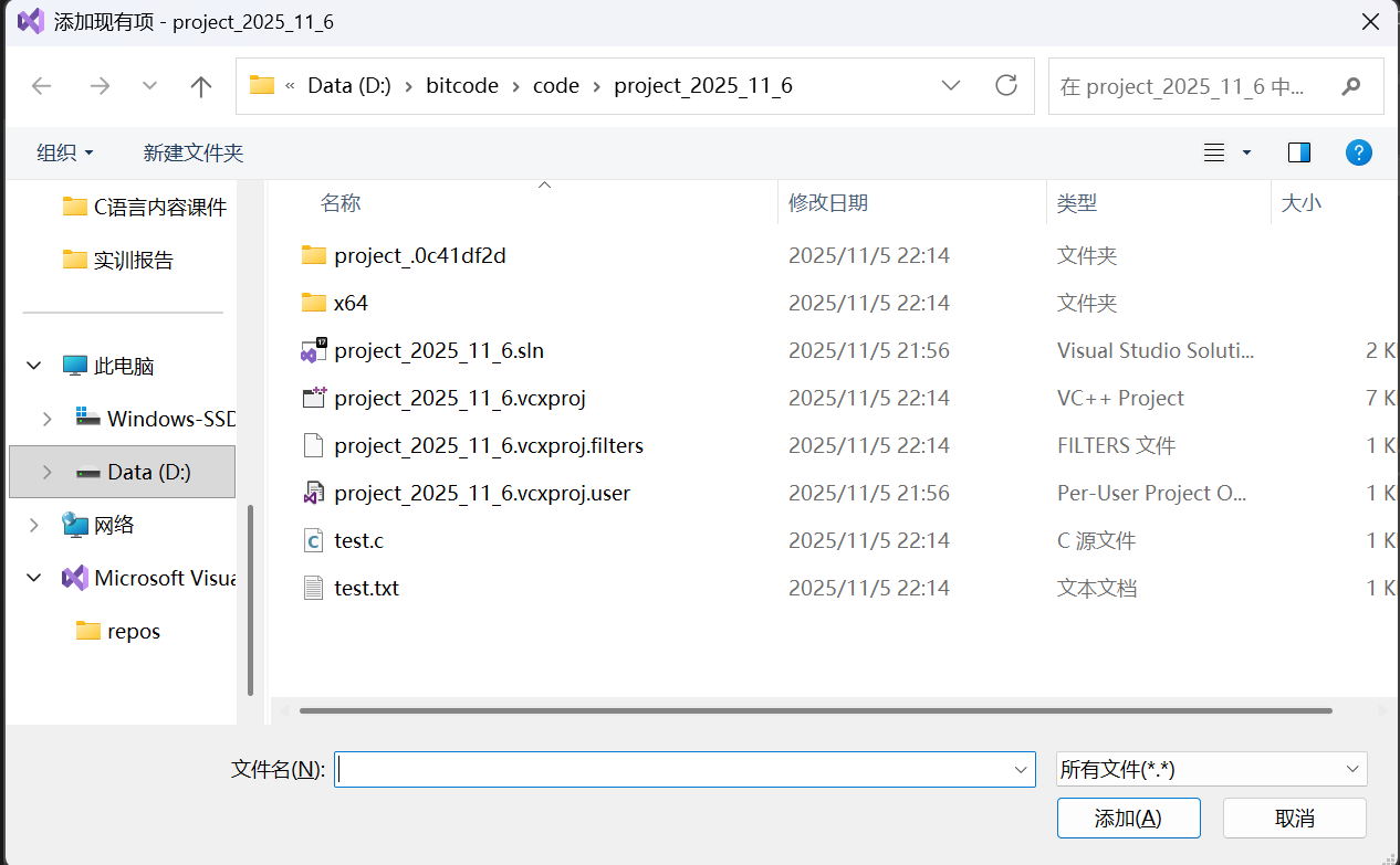 选择现有项之后会跳出下面这个窗口: