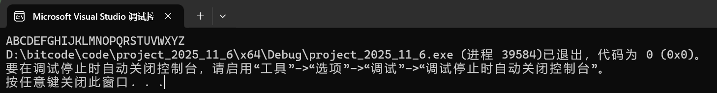 for ( n='A' ; n<='Z' ; n++)