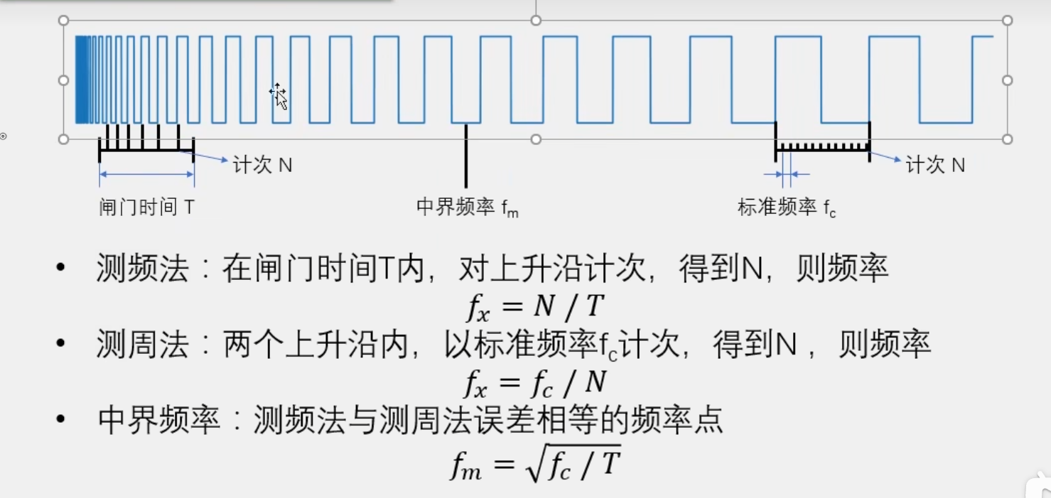 测周法就是,周期的倒数就是频率,我们如果能测出一个周期的时间,那么周期在取倒数就是我们的频率了。