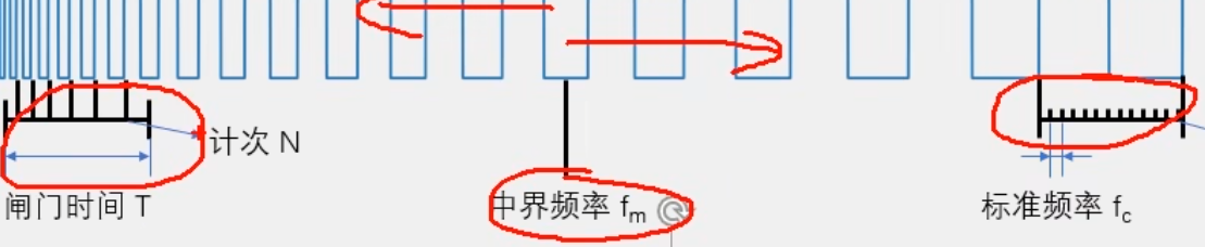 在闸门时间T内,对上升沿计次(计次下降沿也可以,只是极性不同)的到N。